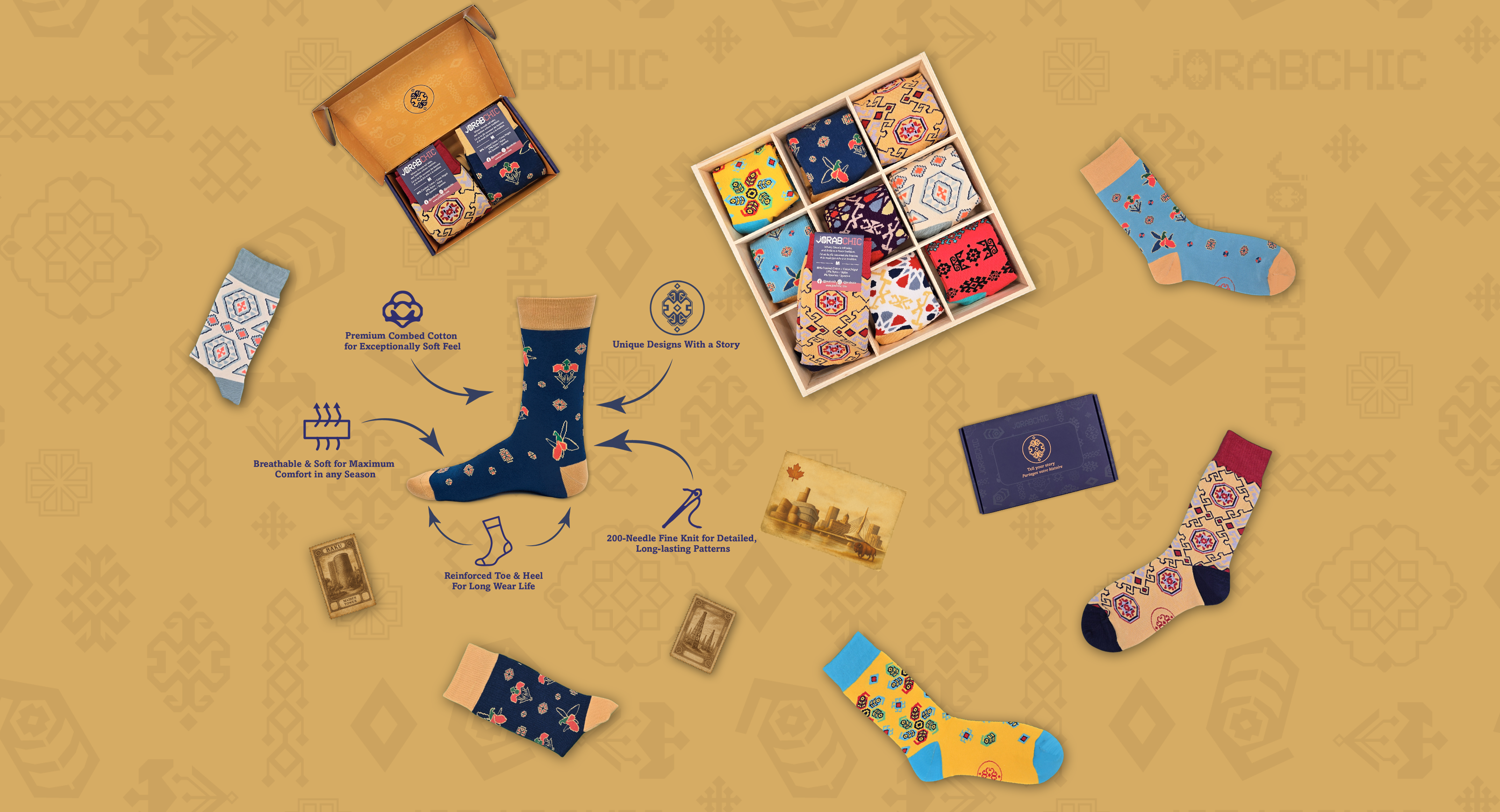 At JorabChic, every pair of our designer cotton socks tell a story. Inspired by our Azerbaijani family heritage of sock knitting and carpet weaving, we blend centuries-old traditions with modern...